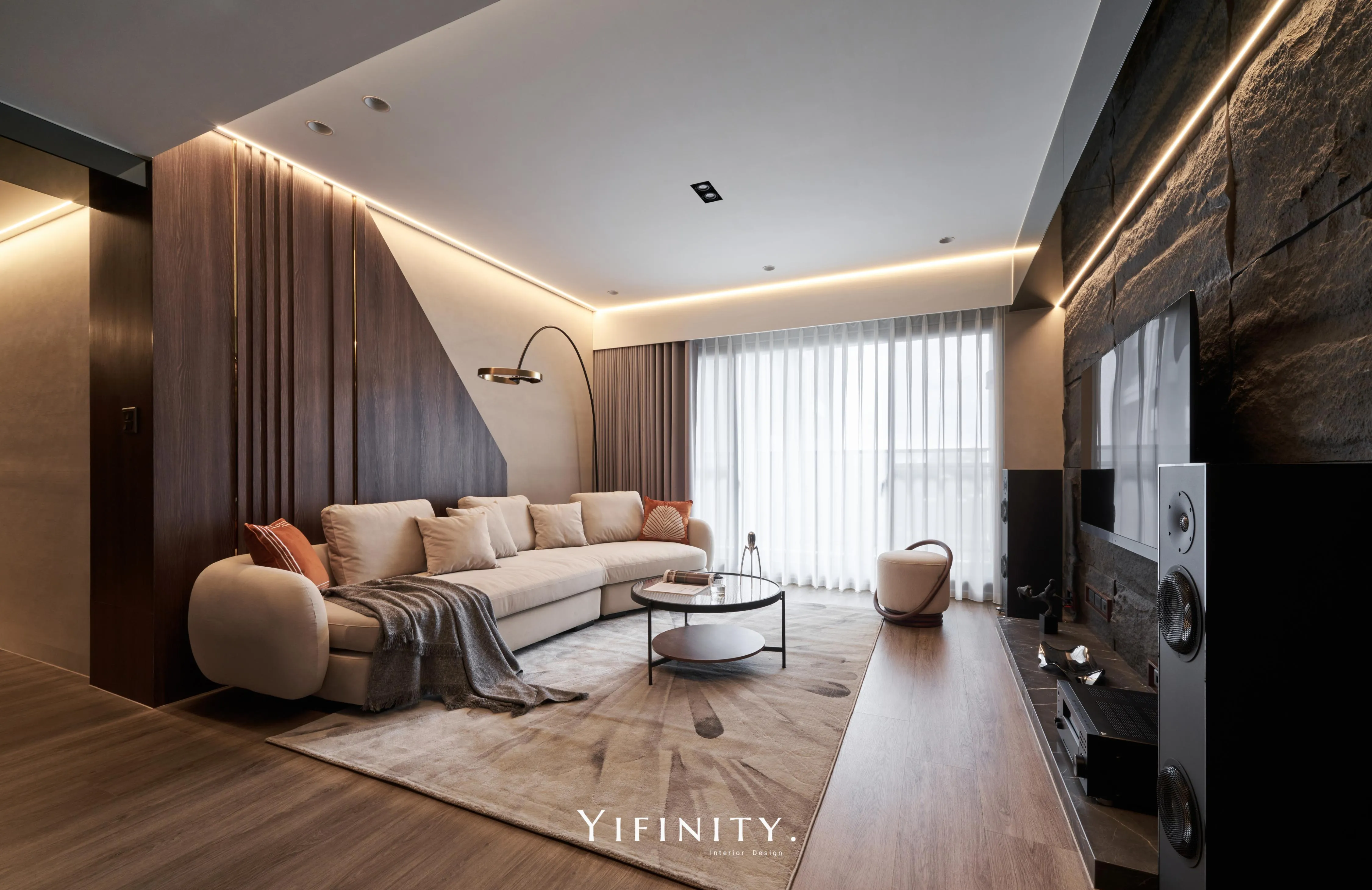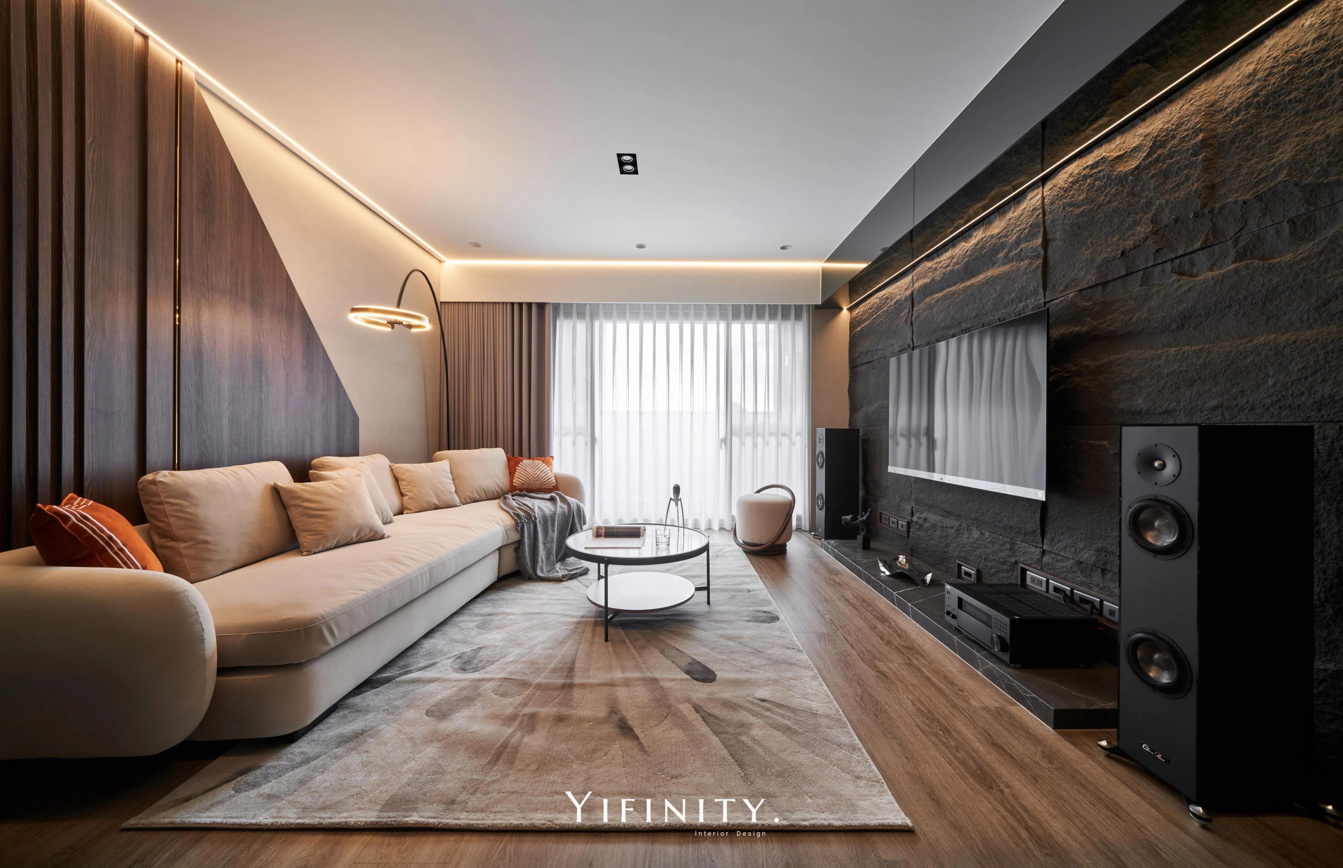 設計的力量,在於平衡空間的美學與實用。 我們運用 線條、材質、光影 來塑造視覺焦點, 不僅讓電視牆成為主角,更讓整體空間延伸出 大器且現代的氛圍。 這是一場關於「生活」與「美學」的對話。